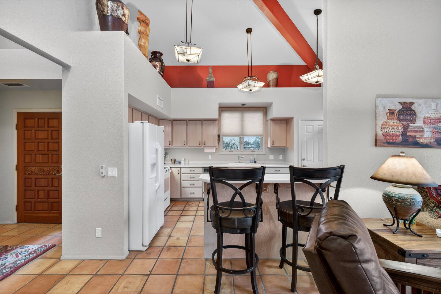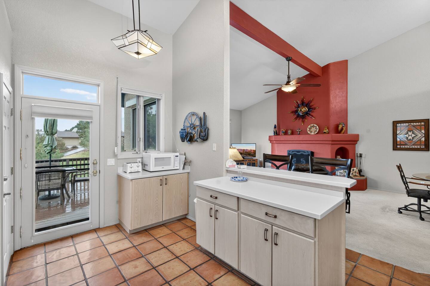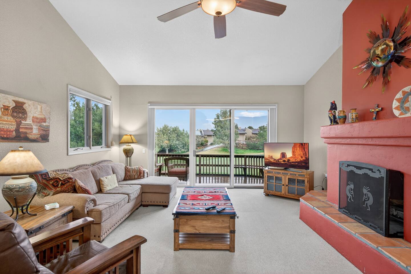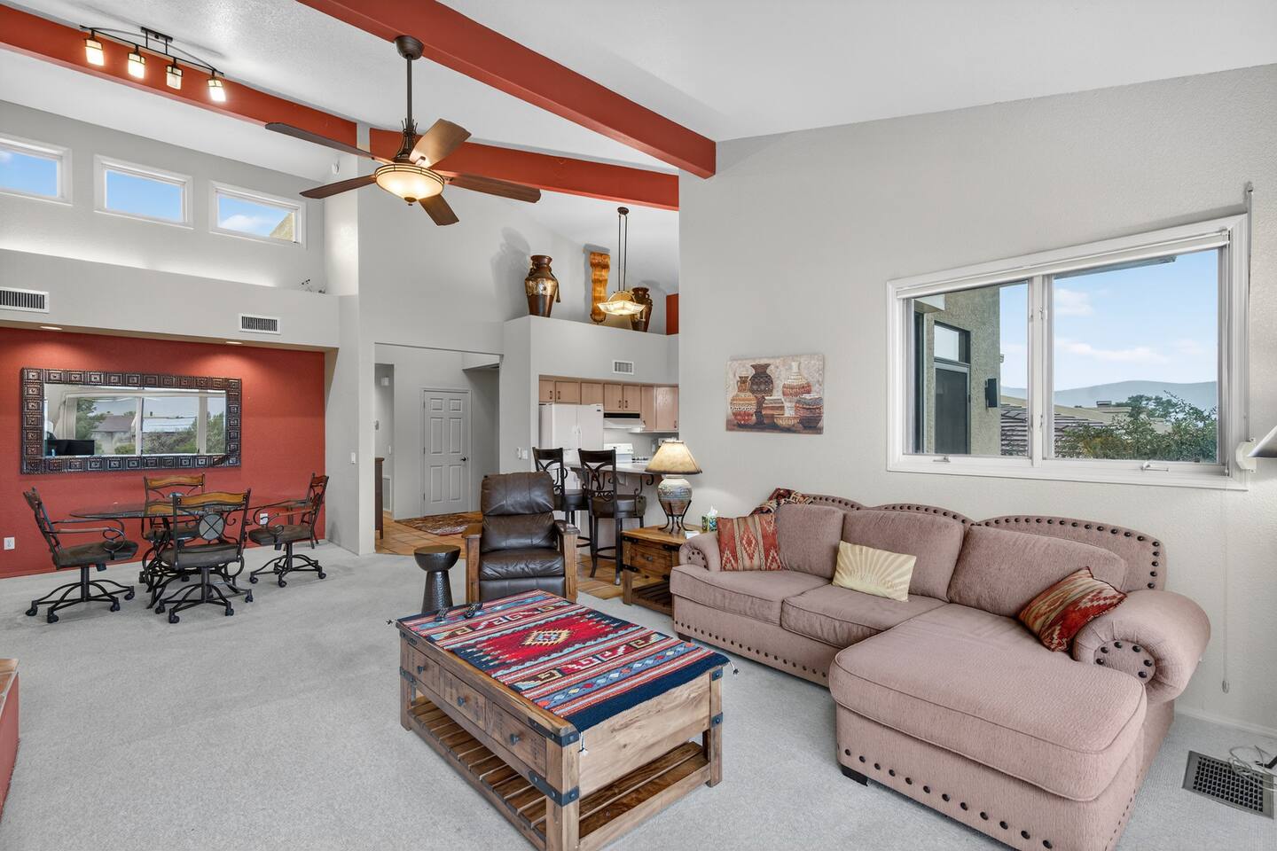 The Space Welcome to your perfect Sedona getaway—where comfort meets stunning natural beauty and views. This cozy 2BR/2BA townhome sits right along the green of Canyon Mesa golf course, offering fantastic views of Sedona’s iconic red rocks. Whether you’re here to relax, explore, or play a few rounds of golf, this home delivers a seamless blend of tranquility and convenience. Inside the Home Step into a bright, open living space designed to feel both cozy and refined. Natural light pours in, highlighting the clean, Aztec finishes and comfortable furnishings. Kick back on the sofa, stream your favorite shows on the TV, or simply unwind after a day outdoors. High-speed Wi-Fi and an in-unit washer/dryer make it easy to settle in—whether you’re staying for a weekend or a while. The kitchen is fully stocked with everything you need to cook and entertain. From morning coffee to evening dinners, enjoy meals inside at the dining table or take things outside to soak in the views. Outdoor Living This home truly shines outdoors. Start your mornings on the private deck overlooking the course, where peaceful surroundings and red rock vistas set the tone for the day. In the evening, unwind in the courtyard or fire up the electric BBQ for a relaxed dinner at sunset. Multiple outdoor spaces give you room to spread out, recharge, and enjoy Sedona’s incredible scenery. Sleeping Arrangements Primary Suite: King bed, en-suite bathroom, streaming TV Guest Bedroom: Queen bed, nearby full bath, streaming TV Den: Couch with fold-out bed Traveling with extra guests or little ones? Pack ’n Play, and highchair are all available for added flexibility. Community Perks Just a short stroll away, you’ll have access to resort-style amenities that elevate your stay: Heated pool (open and heated April 15 – November 15, weather permitting) Open year-round hot tub Tennis & pickleball courts Easy access to Canyon Mesa Golf Course Golf lovers will appreciate being steps from one of the top-rated short courses in the country—perfect for a quick round or a full day on the greens. Good to Know Open parking available throughout the community Prime Sedona Location You’re perfectly positioned to experience the best of Sedona—just minutes from hiking trails, scenic viewpoints, restaurants, and local shops. Whether your trip is all about adventure, relaxation, or a bit of both, this townhome offers a comfortable, stylish home base in an unbeatable setting.
