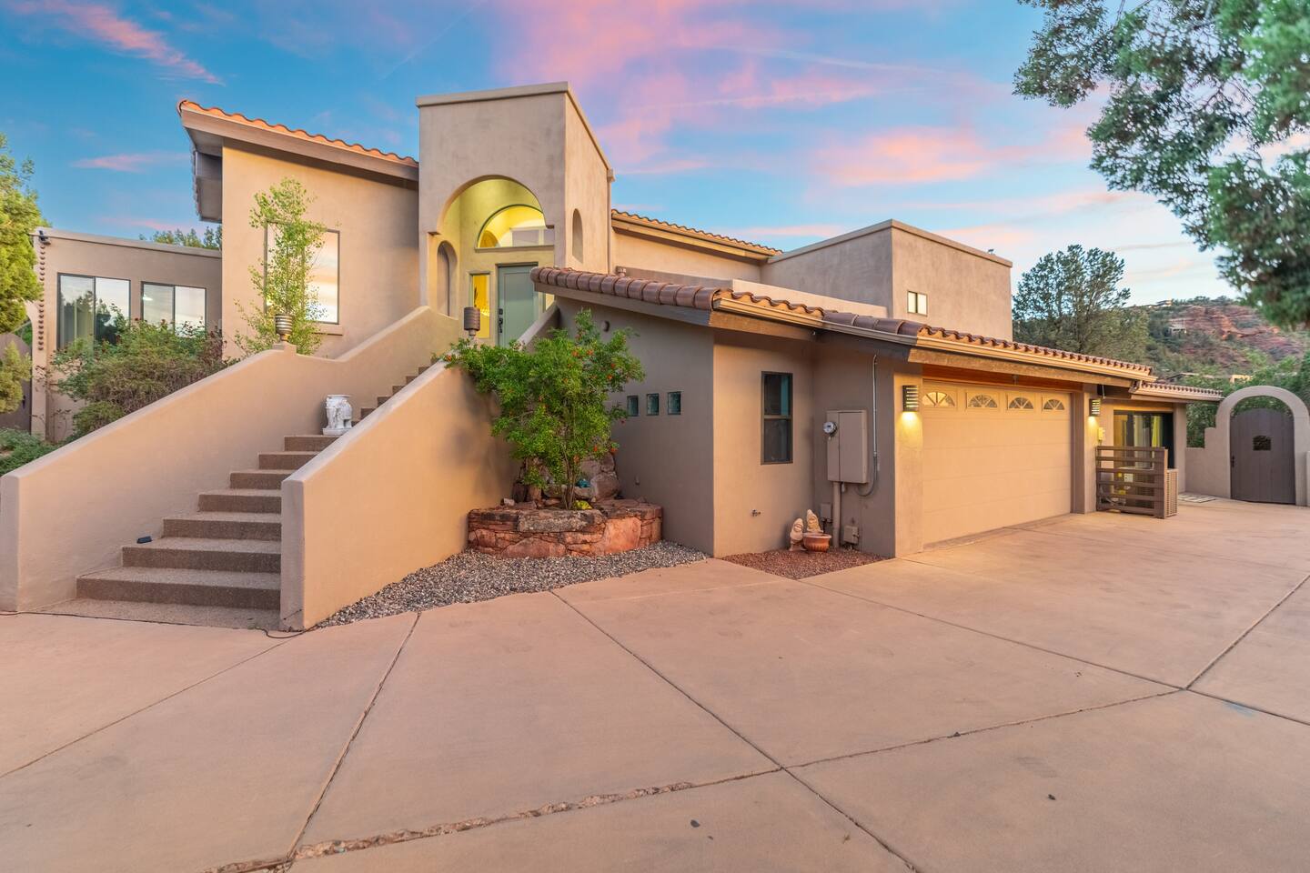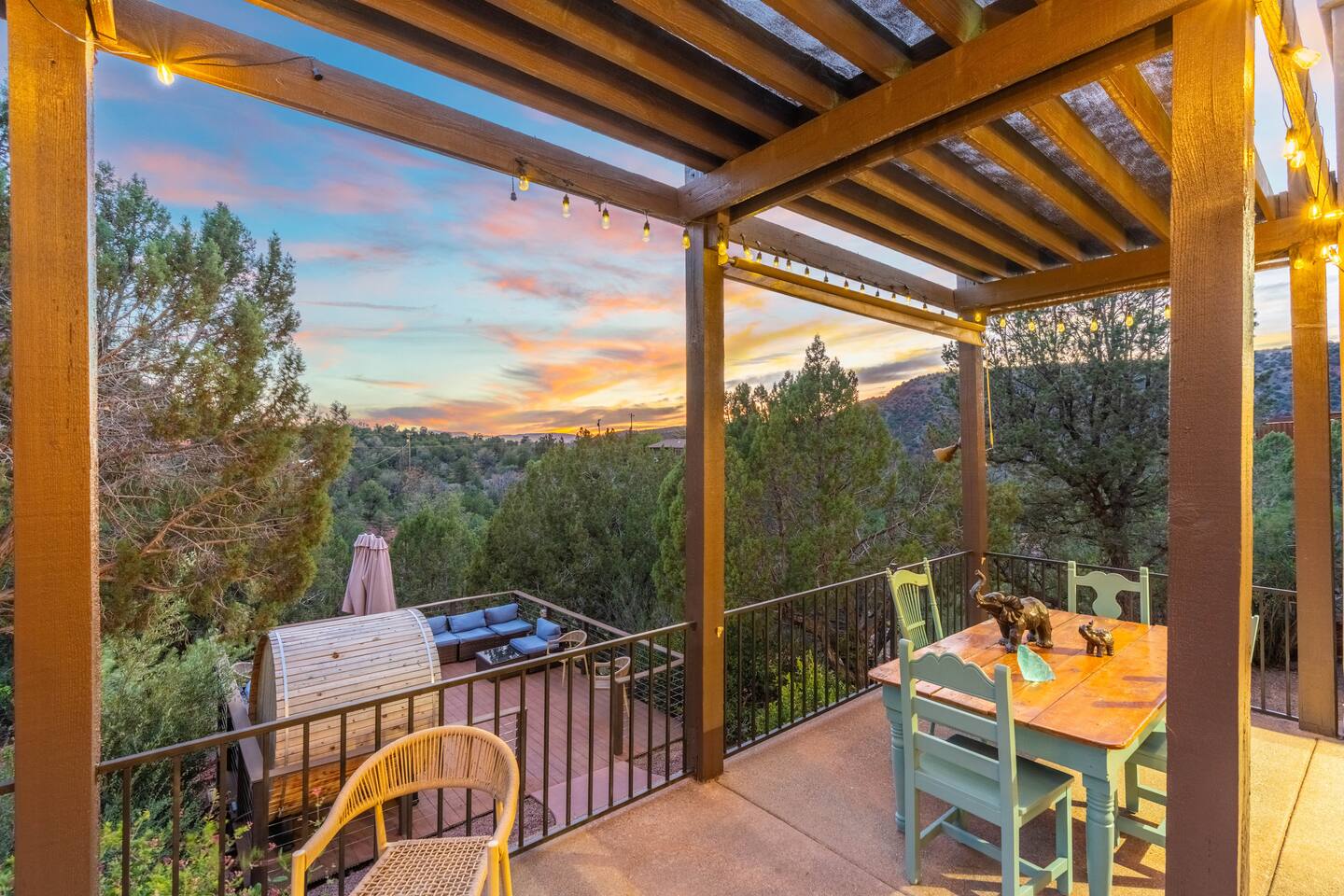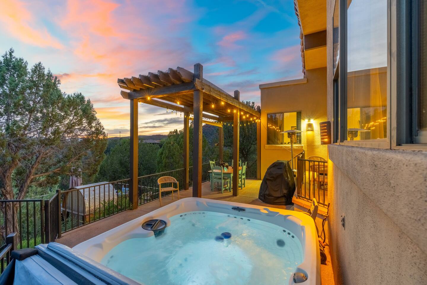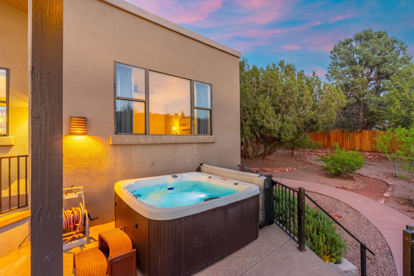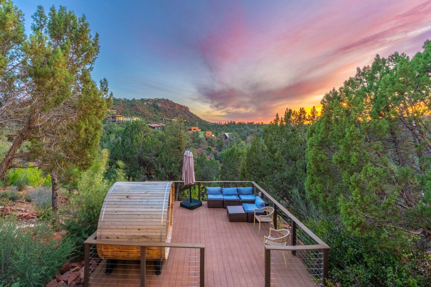 Nestled in the heart of the Chapel area, this stunning 5-bedroom home is the perfect getaway for red rock explorers and spiritual seekers. Relax and take in the golden hour glow from the private deck, or soak in the hot tub or rejuvenate in the sauna under the star-filled Arizona sky. With world-class hiking and iconic vortex sites just steps away, come experience the magic of Sedona with us. -5 Min to Bell Rock -8 Min to Cathedral Rock -10 Min to Uptown Sedona