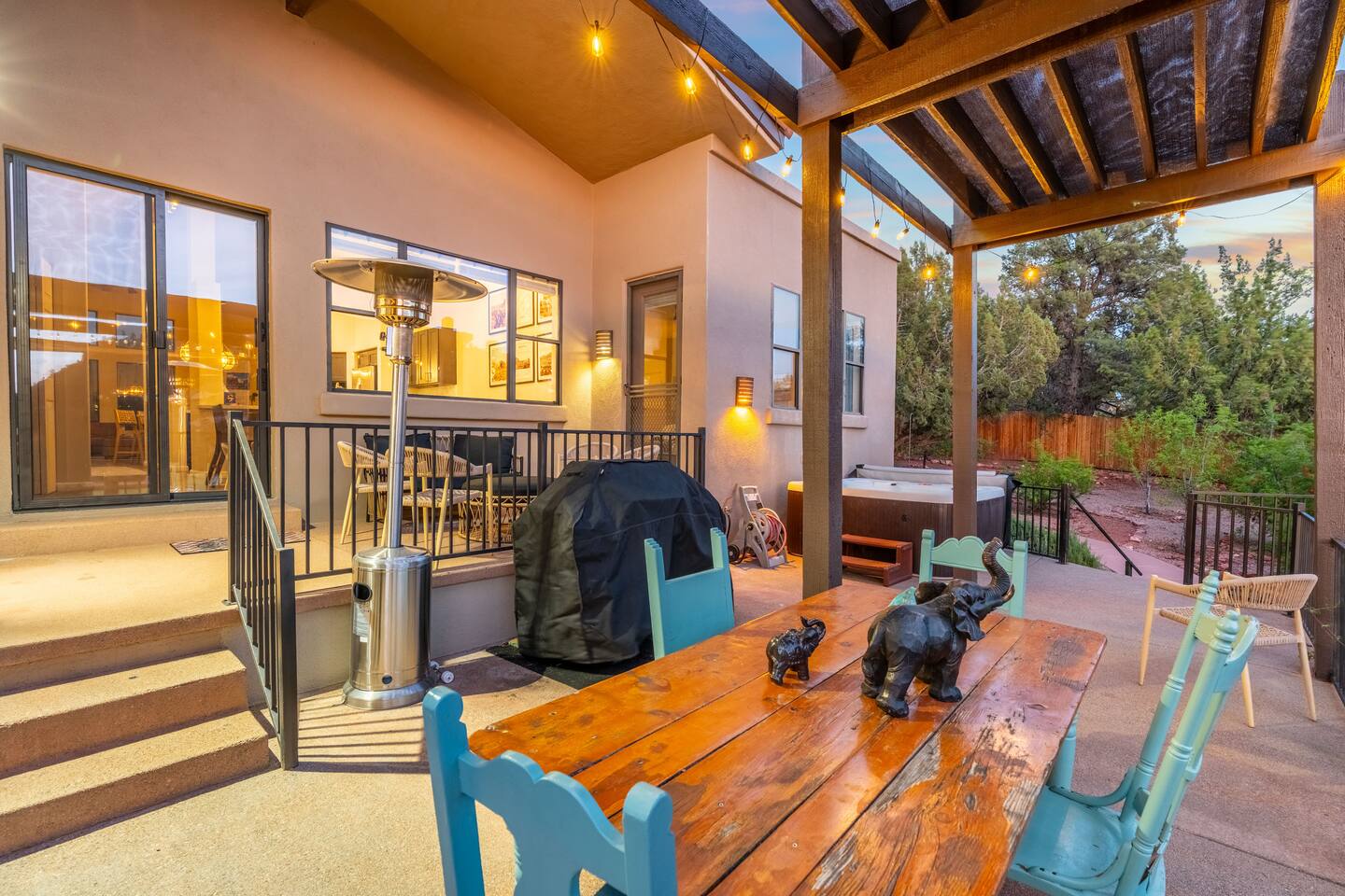 The Bowe's have done it again in the Chapel area. As our latest full renovation designed with the ultimate wellness traveler in mind, Castle Rock Retreat is our most restorative sanctuary yet. KEY FEATURES: ☀ Sleeps 14: Expansive 5-Bedroom, 3-Bath layout on nearly an acre of private land ☀ Private Wellness Spa: Features a dedicated Sauna and Hot Tub under the stars ☀ Private Backyard Trail: Direct, exclusive access to Oak Creek for morning meditations ☀ Chef’s Kitchen: Large prep island, stainless appliances, and dining for 8+ ☀ Entertainment Hub: Home theater projector, vintage arcade game, poker & bunker ball table ☀ Yoga & Zen Space: Dedicated room for stretching, yoga, and mindful movement ☀ Family & Toddler Friendly: Equipped with high chair, safety gates, and kid-friendly dinnerware ☀ 20+ Fruit Trees: Wander through a lush, edible landscape with red rock views ☀ High-Speed WiFi: Remote-work ready with a dedicated workspace and monitor ☀ Premium Location: Minutes from Bell Rock, Cathedral Rock, and Chapel of the Holy Cross Expect a Five-Star stay with us. We provide a full digital concierge to assist with booking activities, reservations, and vortex energy experiences. Here's what a few guests have said: "Top Airbnb. If/when we come back to Sedona, we would organize a trip around the availability of this home." - Stephanie "This place is absolutely one of my favorites!!! We had 8 ladies celebrating my birthday and we had the greatest time. So great that we never left the property. The house is huge and offers so many sleeping options. We had such a great time on the patio, in the hot tub, the sauna and there is a beautiful easy hike off the backyard where we found the most beautiful little spot to ground ourselves. I am obsessed with this place and will definitely be back! 10 out of 10!!!" - Cassie ★ The Retreat ★ ☆☆ BEDROOMS ☆☆ This expansive sanctuary accommodates up to 14 guests across five thoughtfully designed sleeping areas. Primary Suite: Wake up to red rock views in a luxury King bed. This spa-style suite features a soaking tub, rain shower, and a walk-in closet. It also includes an a fold out ottoman to accommodate extra guests, making it a perfect family hub. The King Guest Rooms: Bedrooms 2 and 4 both feature plush King beds and high-end linens. Bedroom 4 includes an attached bathroom for added privacy. The Sun Room (Bedroom 3): A light-filled space featuring a Queen bed plus a twin trundle—ideal for kids or a small family group. The Yoga Room (Bedroom 5): This flexible space houses a twin bed with a trundle but doubles as your private studio for morning stretches and meditation. ☆☆ BATHROOMS ☆☆ Three full bathrooms are stocked with premium towels and essentials, including a primary ensuite with a spa-style soaking tub and a third bath with a shower/tub combo perfect for the kids. ☆☆ KITCHEN & LOUNGE ☆☆ The light-filled living area features large windows that frame Sedona’s scenery like fine art. Relax on plush seating for a movie night on the Smart TV after a day on the trails. The chef’s kitchen is fully equipped for large groups, featuring an electric range, stainless steel appliances, and a massive prep island. Whether you’re hosting a celebratory dinner or enjoying a quiet coffee with a view, this space handles it all with ease. ☆☆ OUTSIDE SPACE ☆☆ Set on nearly an acre, the exterior is a private desert oasis. Follow your own private trail down to the cooling waters of Oak Creek, or wander through the orchard of 20+ fruit trees. After sunset, the backyard transforms into a resort-style spa: rejuvenate in the private sauna, soak in the hot tub while stargazing, or grill out on the BBQ while the shadows fall over Cathedral Rock. ★☆ Book Today & Let Us Take Care Of You In Sedona! ☆★