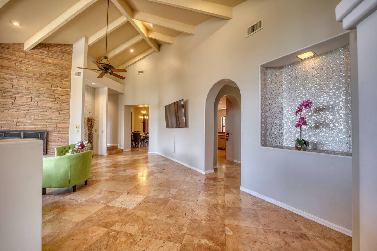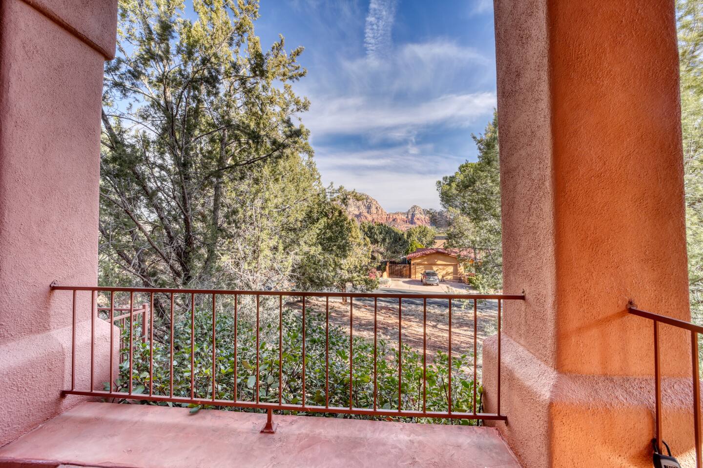 ☀ Sleeps 16 | 4 bedrooms + game room sleeping ☀ 3.5 bathrooms | 3 en-suite bathrooms ☀ Private hot tub, fire table & built-in grill ☀ Game room w/ pool table + movie viewing area ☀ Multiple patios w/ dining & lounge seating ☀ Red rock views from living room ☀ Spacious kitchen w/ island + coffee bar ☀ Family-friendly (high chair + crib) ☀ Quiet West Sedona location near trailheads ☀ Driveway parking for up to 6 vehicles 🛏️ BEDROOMS Each bedroom is thoughtfully designed with comfort in mind, featuring designer-selected furnishings and plush king beds to ensure restful nights after a day of exploring Sedona. The primary suite offers a peaceful retreat with a king bed and a private en-suite bathroom, creating a spa-like experience to unwind and recharge. Bedrooms 2 and 3 each feature king beds and their own en-suite bathrooms with showers, providing privacy and convenience for multiple couples or families traveling together. Bedroom 4 also includes a king bed and is ideal for additional guests, with easy access to a nearby bathroom. 🎱 The game room offers a pool table and doubles as a fun and flexible sleeping space, offering 2 full beds, 2 twin daybeds, and 2 twin trundles—perfect for kids or larger groups to gather, relax, and recharge. BATHROOMS With 3.5 bathrooms, there’s plenty of space for everyone to get ready comfortably. Three bedrooms feature private en-suite bathrooms, while an additional full and half bath serve the rest of the home. Each bathroom is fully stocked with shampoo, conditioner, body wash, and all essential toiletries for a seamless stay. 🍽️ KITCHEN & RELAXING AREAS 🛋️ The spacious kitchen is designed for gathering, featuring a large island, full suite of appliances, and all the cookware and essentials needed to prepare meals with ease. Enjoy morning coffee with both drip and Keurig options, or gather around the dining table for shared meals and conversation. Inside, the home offers multiple inviting spaces to relax—from the cozy living room with red rock views and fireplace to the dedicated movie viewing area perfect for family nights. The game room adds another layer of fun with a pool table and space to unwind, making this home ideal for both relaxation and entertainment. 🌅 OUTSIDE SPACE Step into your own private backyard oasis, surrounded by Sedona’s natural beauty. Soak in the hot tub after a day on the trails, fire up the built-in grill for an al fresco meal, or gather around the fire table under the stars. Multiple patios offer both dining and lounge seating, creating the perfect setting for morning coffee, sunset views, or evening conversations. With peaceful wooded surroundings and touches of red rock scenery, the outdoor space is designed for both relaxation and connection. Parking is easy with a spacious driveway accommodating up to 6 vehicles (no garage or street parking available). ★☆ Book Today & Let Us Take Care Of You ☆★ Your Sedona escape awaits—whether you're here for adventure, relaxation, or quality time together, this home offers the perfect setting. Reserve your stay today and experience comfort, connection, and unforgettable memories in the heart of West Sedona.