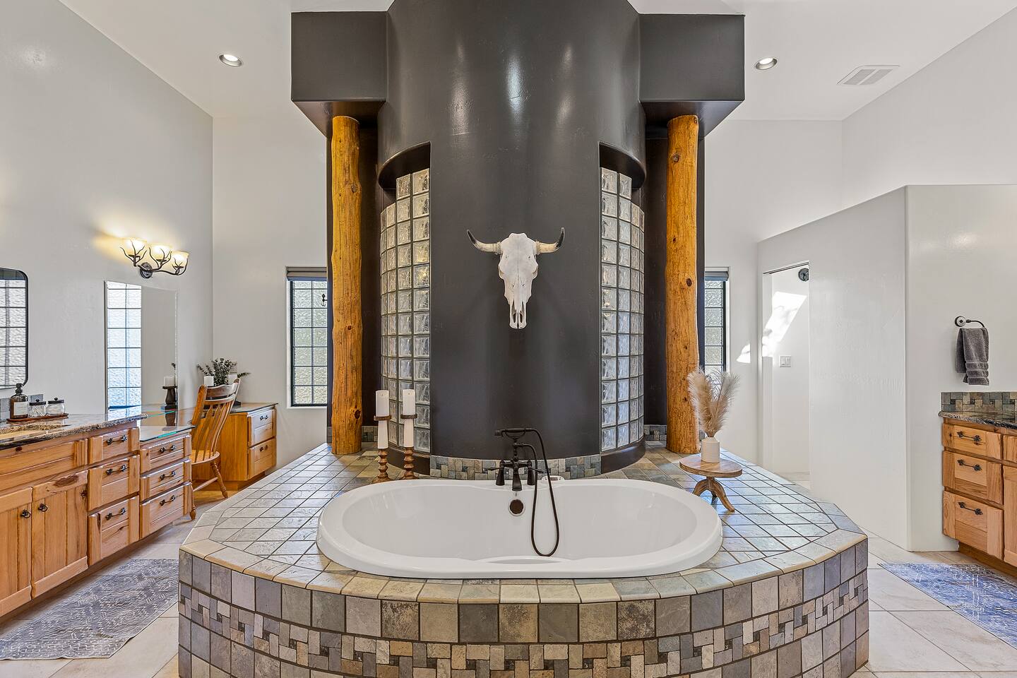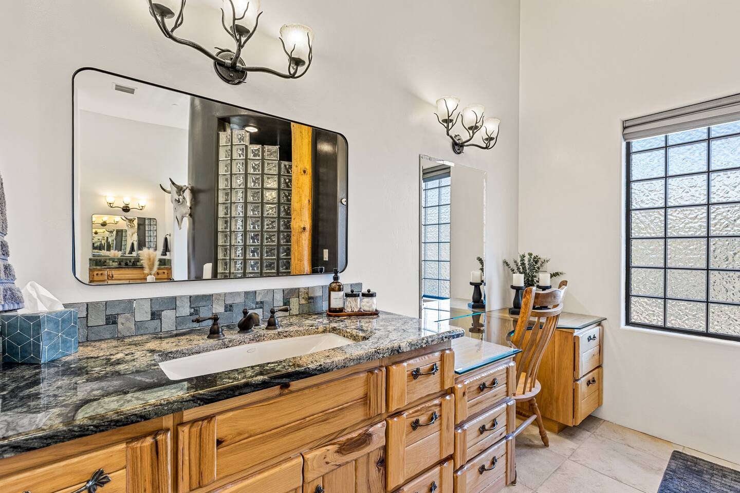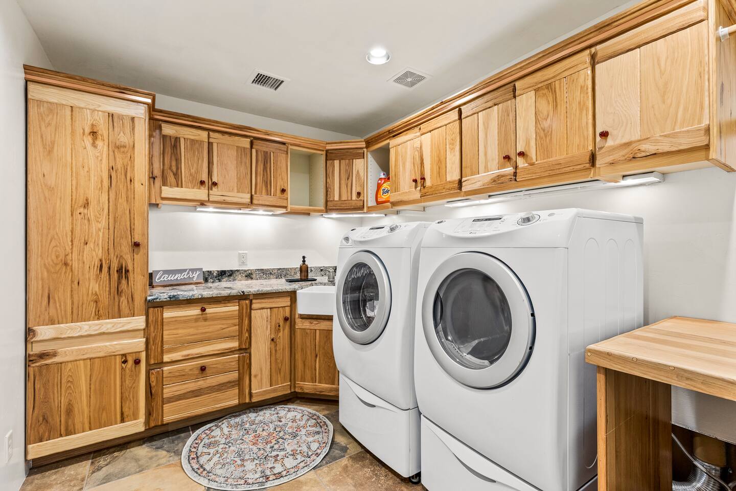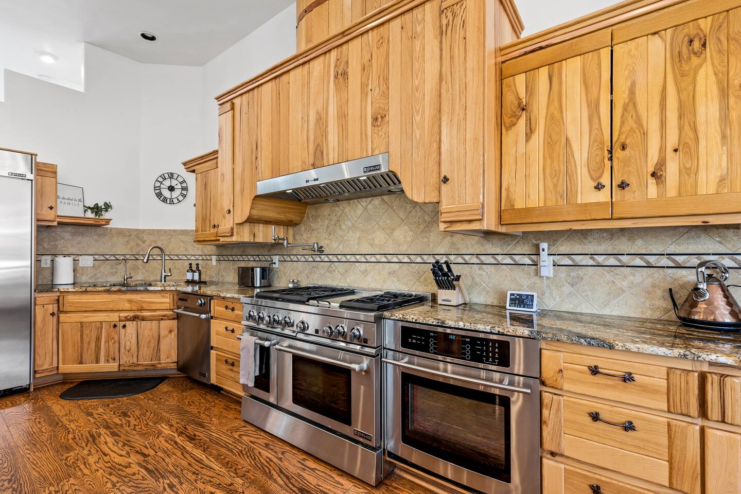 Sedona Bliss is luxury living at its finest! Bliss is defined by Webster as “complete happiness, paradise, or heaven”. Your stay at Sedona Bliss will be exactly that in our private 3850 square foot estate on a single level that was curated in Modern Cowboy décor. The property is nestled on one acre, surrounded by forest land, yet located just a few minutes from world-class hiking, trail riding, vineyards and all the other activities offered in the area. The house is located in a very quiet neighborhood. Respect for our neighbors and neighborhood are the most important thing to us. Do not book this house if you plan to be loud and disrupt our neighbors. *Absolutely no parties. The location of the property is ideal in that it is less than 5 minutes to West Sedona or 12 minutes to downtown Sedona, but away from the hustle and bustle and traffic of the city. It is on the road to Red Rock State Park (2 miles) and close to Cresent Moon Recreation area. Oak Creek Homestead OHV trail is less than .5 miles from the property. The property is also close to the booming Verde Valley Wine Trail and historic Jerome and Cottonwood. Wake up in the morning to see hot air balloons overhead! Every aspect of this home has been thoughtfully appointed and carefully curated to promote comfort, relaxation and rejuvenation. Come experience the true spiritual energy of Sedona Bliss! Our Location: Less than a 5-minute drive to Geraldo’s, Dahl & DiLuca, Café Jose, Golden Goose Grill, Local Juicery, Famous Pizza & Beer, Sedona Crepes and the always popular Vino di Sedona, with live music every night. Local hikes out of our back yard with great views of Thunder Mountain and Cathedral Rock Freedom to enjoy quick access to hiking trails while avoiding the traffic common in Uptown Sedona. Incredible stargazing and quiet solitude Only 15 minutes away from Arizona's best wineries in Cornville & Paige Springs The space Welcome to Sedona Bliss, one of Sedona’s most stunning and luxurious Airbnb properties. This extraordinary estate can sleep up to 16 people and is ideal for a family vacation or couples travelling together looking for a memorable getaway. The Rooms KITCHEN & DINING Upon entering the home, you will be greeted by the open concept kitchen, which features granite countertops and Jeannair custom built-in appliances. There is a separate Pantry between the kitchen and living room. The kitchen is a true chef’s dream. Simply put, this kitchen will make you say “WOW!” Your group will love cooking and enjoying incredible meals in this fabulous kitchen. Or, let someone else do the cooking. We can provide recommendations for a private Chef that you will enjoy while unwinding. The kitchen is equipped with 3 ovens, 6 burner gas cooktop, and built in griddle. Living Room The living room is thoughtfully laid out with enough seating for 8. There is a 65” smart tv for your enjoyment. Ambiance is provided by a gas fireplace. Pool Room Next to the living room is a pool table for your group to get their competitive juices flowing. Bar Between the Living Room and Kitchen is a bar. The bar is stocked with wine and champagne glasses. It features a 12-bottle wine refrigerator. Bedrooms & Bathrooms Each bedroom has been decorated with unique Modern Cowboy décor. ✔ High quality "oh-so" comfortable DreamCloud mattresses ✔ Luxury hotel-grade linens and pillows ✔ Black-out window treatments in all bedrooms ✔ Private spa-like bathroom in Primary Bath ✔ Deluxe style guest bathroom ✔ Washer and dryer with provided detergent All of our linens are hand selected, high quality hotel-grade white linen to ensure all of our guests have a wonderful night’s rest. Bedroom 1 (King Primary): This bedroom is located on the north end of the house with an ensuite private spa-like bathroom and two large walk-in closets. From the moment you walk in, this room will embrace you with a feeling of tranquility and sanctuary - a private oasis for you to rest and relax. Gaze out the window at the beautiful back yard or enjoy your favorite TV show on the 55” private smart TV. A gas fireplace enhances the ambiance of the room while creating warm comfort. The Primary Bathroom is outfitted with luxurious, spa-like finishes from high quality granite to a luxurious walk-in shower. The Bain Ultra jacuzzi tub offers a relaxing soak after your day of activities. The master shower is amazing, with room for 10! It has multiple shower heads including a raintree shower. There are his/hers separate vanities. The lady’s vanity has a makeup area and mirror to get ready for the day. There are his/her closets that are between the bedroom and living room that we have stocked with items needed to support a young family during their stay, including multiple pack and plays, highchairs and other items. Bedrooms 2 – 4 are located on the south side of the house. Two of the bedrooms have king mattresses, while the smaller bedroom has a queen. Each has built-in closets and storage drawers to use during your stay. All three have wall hanging televisions – with two them being 43” smart TVs. These rooms are close to the hall bath, which has two sinks and a shower Bedroom 5: Is located to the right of the main entrance. The room features two queen beds that are side by side. It also has a queen murphy bed which can be folded up during the day to create more room. This room has a unique space that we have converted into a children’s play area. We have a tent and a number of other items, including a 14 game PacMan game set. This will keep the children entertained for hours. In addition to the 3 king beds and 4 queen beds, we have a high-quality blow-up mattress allowing the home to sleep 16. Patio/Outdoors The living space opens to a huge, covered patio that extends the entire length of the house. We have installed a new 7-person hot tub on the north end of the patio. There are many different options for seating on the patio, including a conversation sea