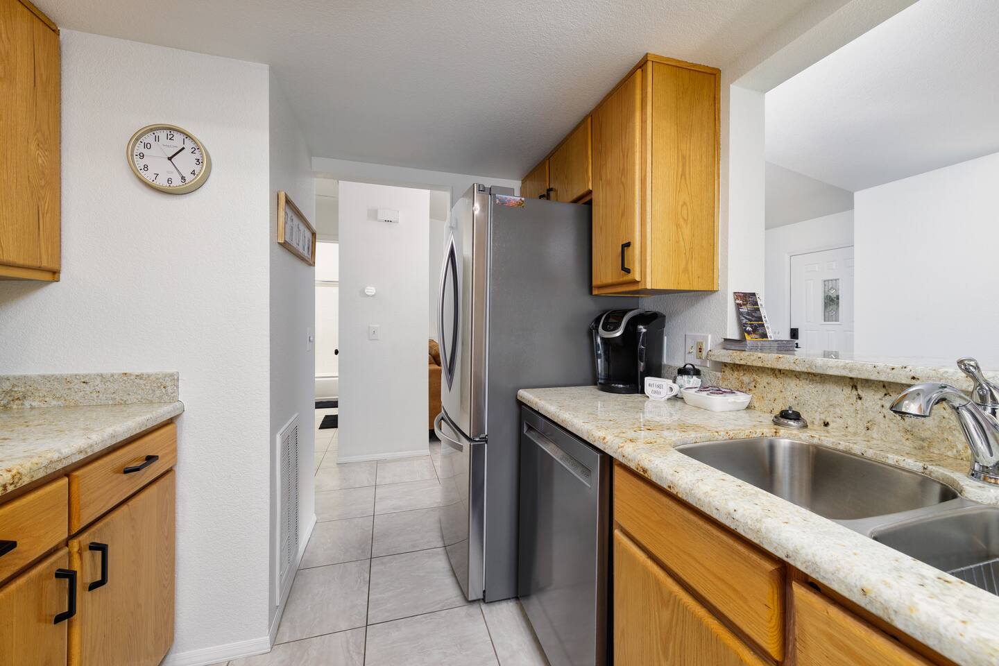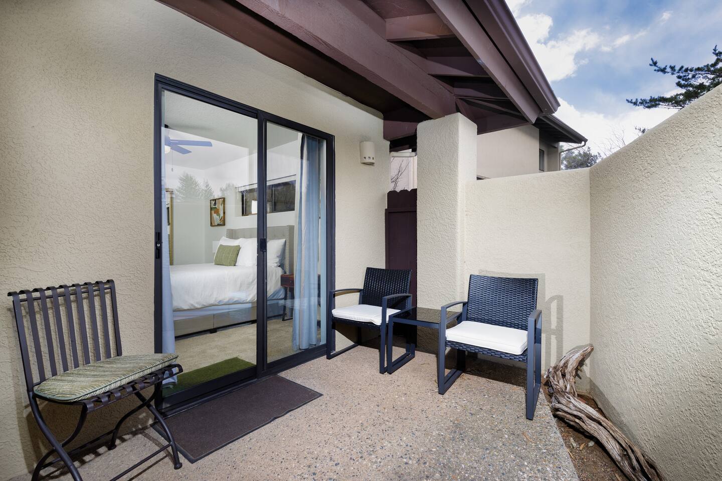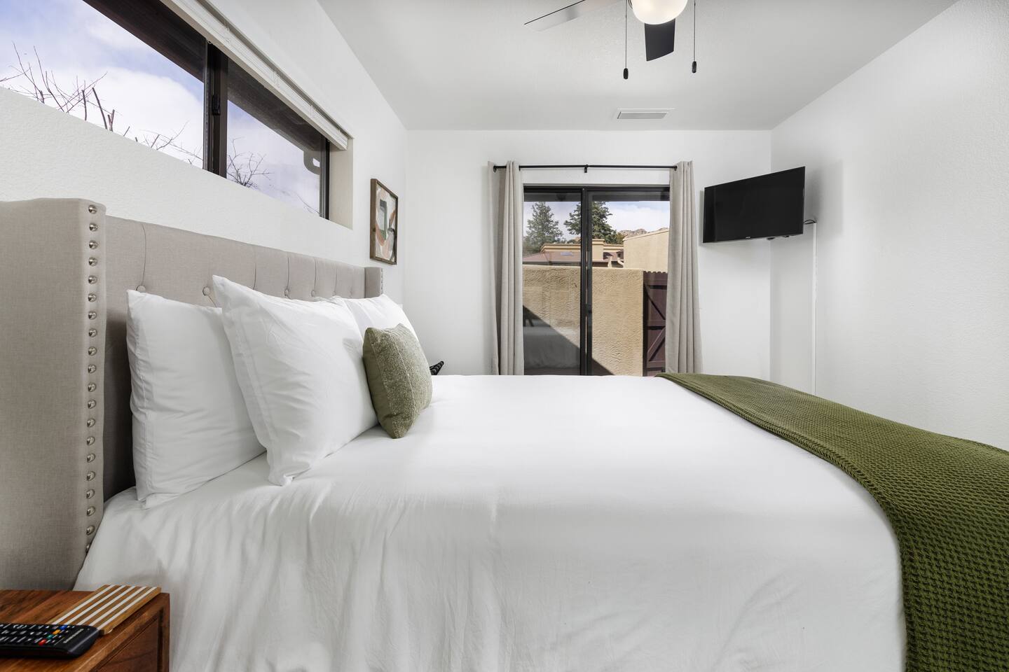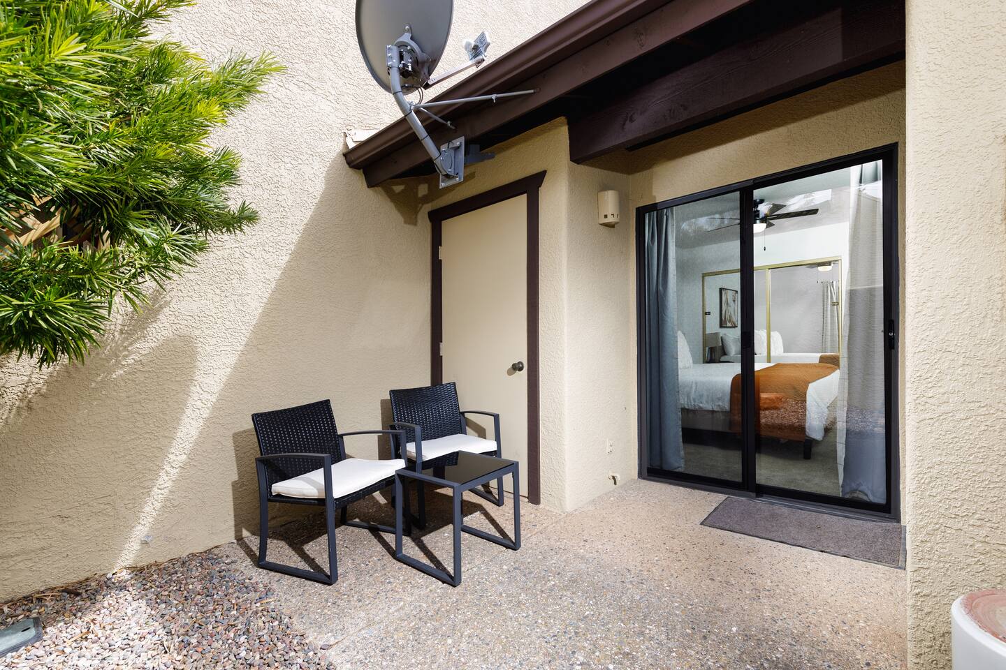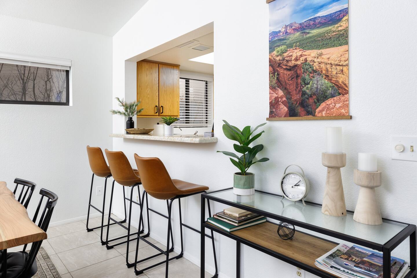 Come stay and relax at this newly renovated townhome situated on Canyon Mesa Country Club golf course. Enjoy this luxurious 2 bedroom 2 bathroom home with access to the community pool, hot tub, tennis and pickleball courts. Have 5 people in your group? We have you covered with a rollaway bed available for your use. Master your cooking skills in a well-equipped kitchen then have your meal on the outdoor deck or dining room table. You are steps away from the golf course surrounded by spectacular red rocks of Sedona. Bedroom and Bathroom: King master bed with master bathroom. Wall mounted TV with streaming capabilities. Queen guest bed and full bath separated. Wall mounted TV with streaming capabilities. Washer and dryer in unit. Private courtyard and deck with outdoor furniture. Amenities: Access to the Hot Tub is open and heated year-round. The pool is open and heated from April 15th thru November 15th (unless winter season arrives early). Please follow the pool and community rules. It is about a 5 minute walk from the townhome. Pack N Play and Highchair available. A blowup mattress and pump is provided in the bedroom closet if needed (no pullout bed in couch). Rollaway bed also stored in the closet. Electric BBQ on front porch. Highspeed WIFI for your convenience. Golf: Canyon Mesa has been ranked the 19th best short course in the United States per Golf Advisor! Book a tee time through Canyon Mesa Golf Club for a small fee. Parking: Uncovered parking available on first-come/first serve basis. There is many open parking stalls within the development and always plenty available. Please do not park in any covered stalls, as they are reserved. Security Camera: This property has a front doorbell Ring security camera. It is always active.