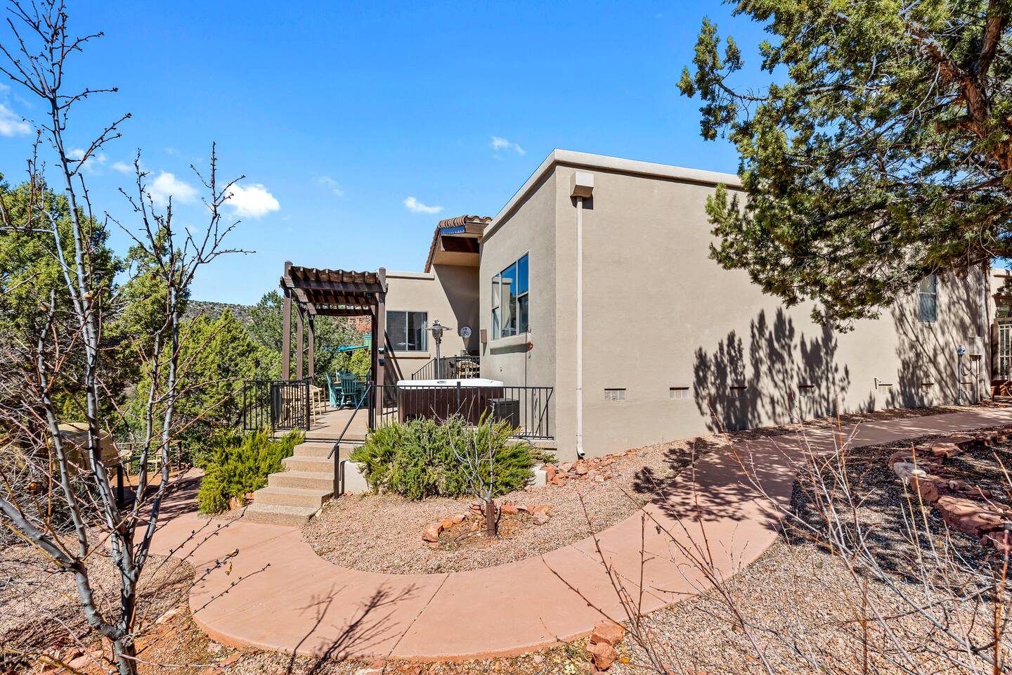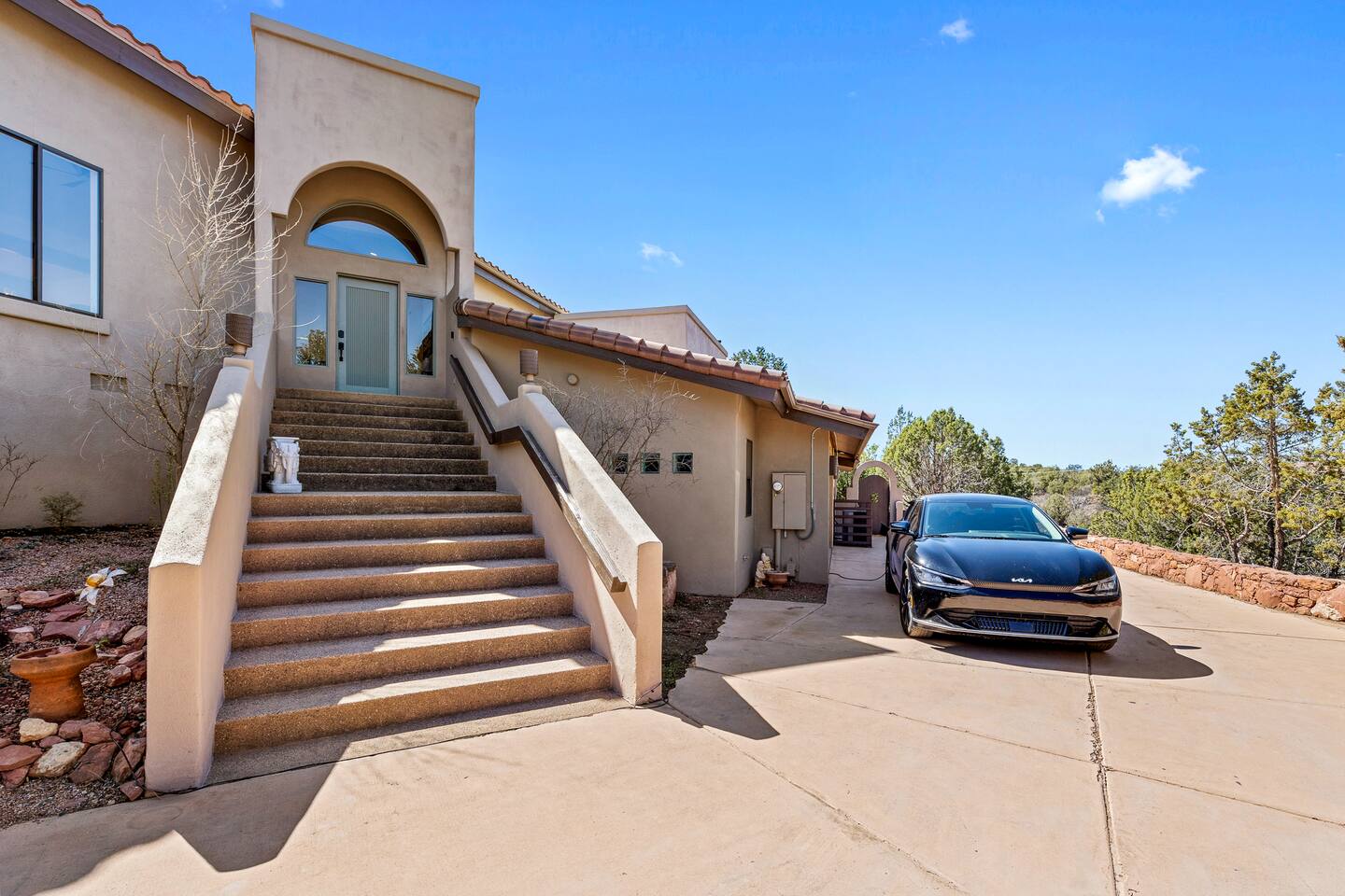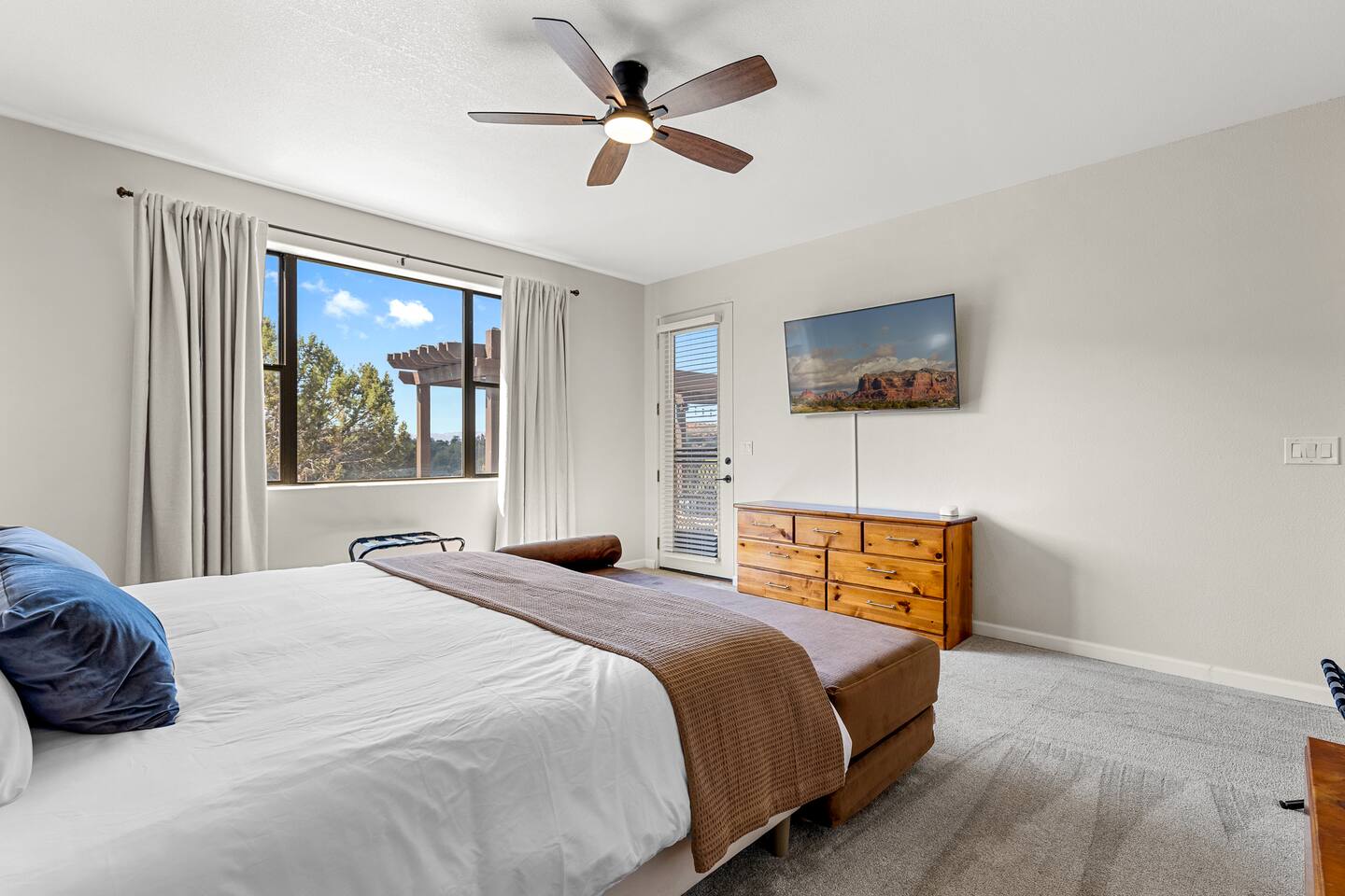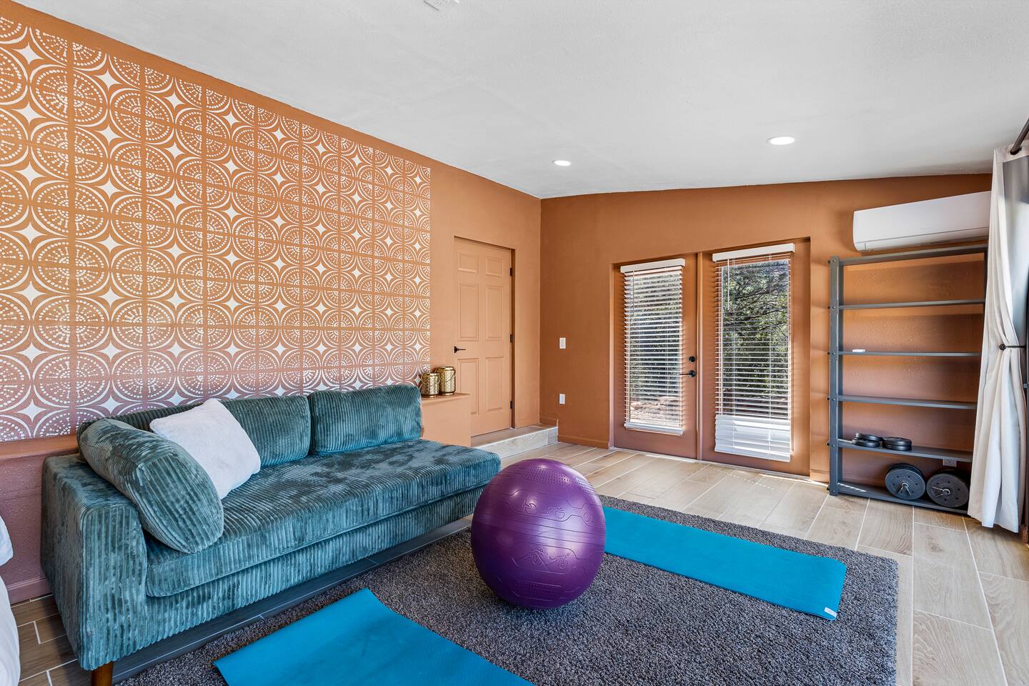 Location: Ideally located for those looking to explore all that Sedona has to offer, this home is just minutes away from hiking trails, scenic viewpoints, and local attractions like the Chapel of the Holy Cross. Dining, shopping, and art galleries are also nearby, providing the best of both adventure and culture. The house is close to all of the main Sedona attractions, including: Chapel of the Holy Cross - 1.3 miles Cathedral Rock - 1.6 miles Bell Rock - 1 mile Downtown Sedona - 3 miles Tlaquepaque Mall - 2.5 miles Oak Creek - 20 min hike (there is a trail out of the back of our property that goes down to Oak Creek) The Space Set on almost an acre property, you will find an abundance of fruit trees in the landscaped yard! Living Room: Step into the bright and airy living room, where large windows allow natural light to flood the space and offer sweeping views of the surrounding red rocks. The room features plush seating for the whole group, a cozy atmosphere, and a smart TV with streaming services to unwind after a day of adventure. Kitchen & Dining Area: Prepare your meals in the state-of-the-art kitchen, fully equipped with premium stainless steel appliances, including a gas stove, microwave, and dishwasher. A spacious island provides additional prep space, while the adjacent dining area, with seating for 8 plus, invites family meals and entertaining. Bedrooms: Master Bedroom: Enjoy privacy and comfort in the master suite, which boasts a king-sized bed, a stylish en-suite bathroom with a walk-in shower, double vanities, and a large walk-in closet. Bedroom 2: This room features a king-sized bed, tastefully decorated, and offers great views of the surrounding landscape. Bedroom 3: Perfect for families, this room has a twin trundle bed and a queen bed (to sleep 4 people) with ample space for relaxation. Bedroom 4: A king-sized bed with cozy linens, connected bathroom and a serene ambiance. Bedroom 5: This spacious room offers a twin-sized bed and a twin trundle bed (sleeps 3) and is ideal for lounging on the couch or doing some yoga. Bathrooms: The master bathroom features a luxurious walk-in shower with rain shower head and free-standing soak tub. A second full bathroom is located near the additional bedrooms, offering an upscale shower. A third bathroom serves the lower living areas and is designed with high-end finishes and includes a shower/tub combo. Entertainment and Amenities: Sauna: After a day of hiking or sightseeing, unwind in the private sauna, the perfect spot to relax and recharge. Hot Tub: Soak under the stars in the outdoor hot tub, an ideal way to enjoy Sedona’s beautiful evenings. Poker Table: For a fun night in, gather around the poker table for friendly competition and games. Arcade: The sunroom includes a vintage arcade setup, providing hours of entertainment for kids and adults alike. Projector System: Experience movie nights like never before with a state-of-the-art projector system and large screen, perfect for creating a home theater experience. Outdoor Space: Step outside to your private backyard, where you can lounge on the comfortable seating or cook up a meal on the BBQ. The space is ideal for al fresco dining, sunbathing, or enjoying the beautiful views. Whether you're relaxing or hosting a gathering, the backyard offers the perfect setting. Additional Amenities: Fast, free Wi-Fi Air conditioning and heating Laundry facilities (washer/dryer) Free parking High-quality linens and towels Smart TV with streaming services Book your stay at Castle Rock Retreat and experience the beauty and serenity of Sedona in a home that offers the ultimate in relaxation, entertainment, and comfort.